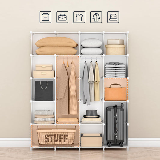 Ordnung Pro Modularer Kleiderschrank mit 20 Würfeln, Türen & Kleiderstange, Weiß – 145 x 46,5 x 183 cm